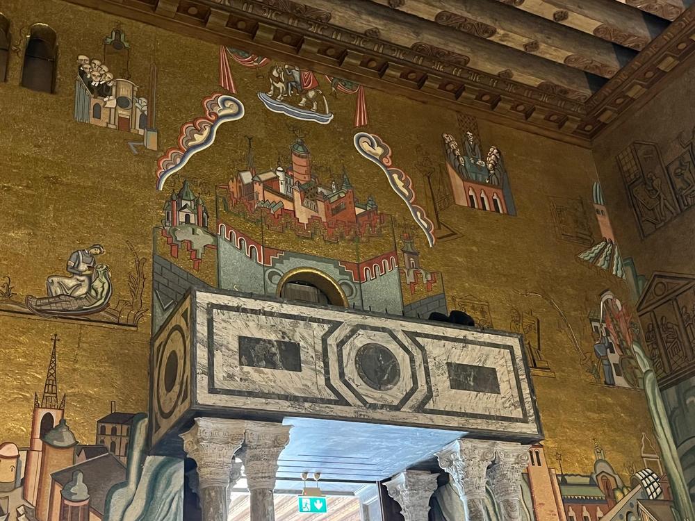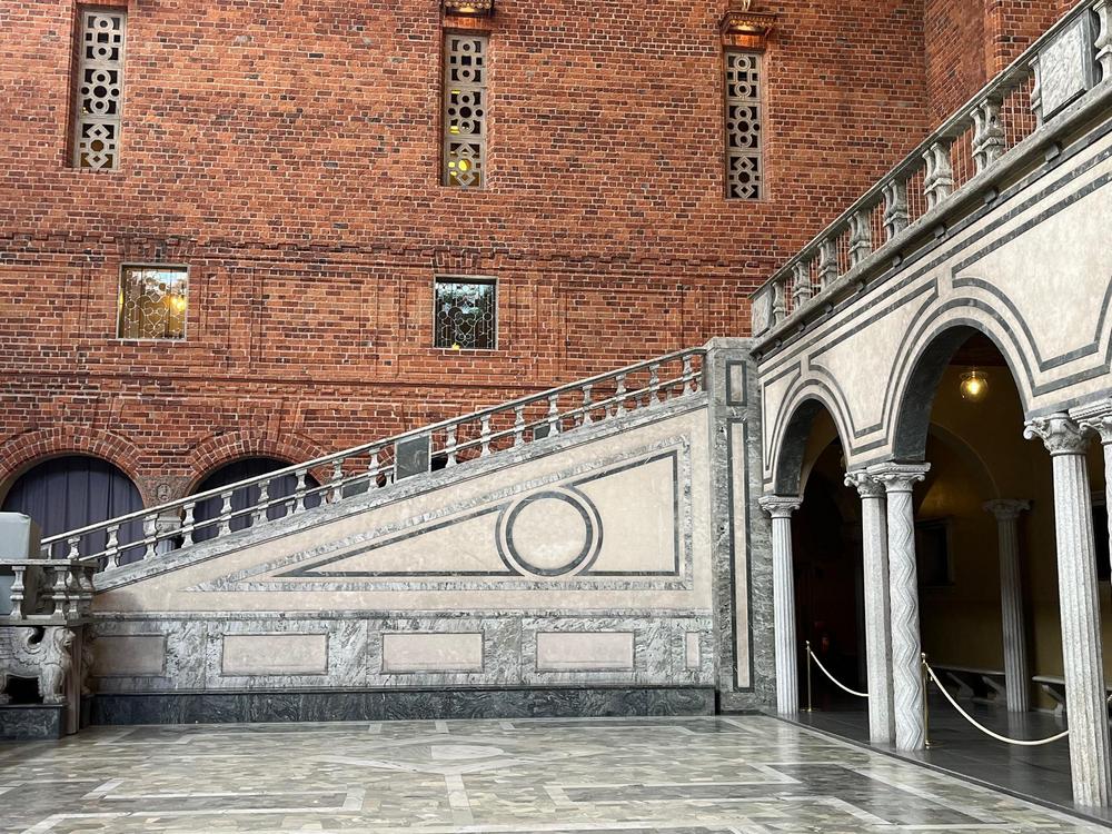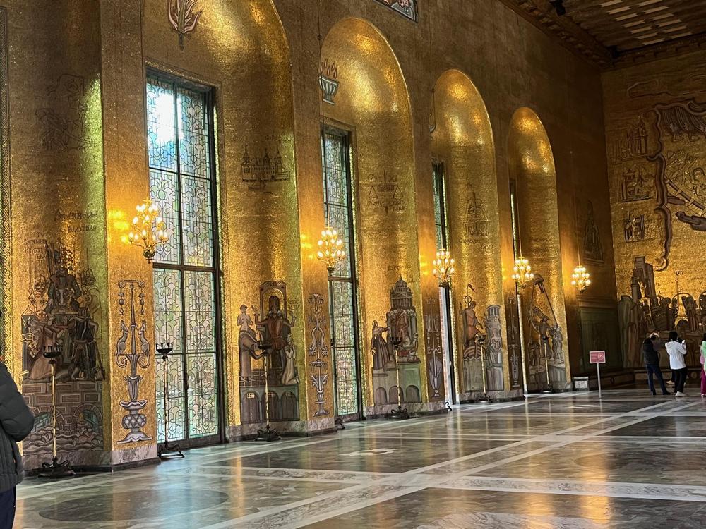 Tukholman kaupungintalo on yksi Tukholman tunnetuimmista ja komeimmista rakennuksista. Se sijaitsee Kungsholmenin saarella Mälaren rannalla. Arkkitehti Ragnar Östbergin suunnittelema kansallisromanttinen talo on valmistunut vuonna 1923 ja on kuuluisa vuosittaisesta Nobel-palkintojen jakamista seuraavan juhlaillallisen järjestämispaikkana. Sinne pääsi vain oppaan kanssa, ja kulku saleissa oli tarkkaa, ei liian nopeasti eikä liian hitaasti. Hieno oli.